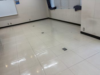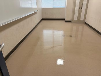 今回は大学教室床の洗浄ワックス清掃を行いました。