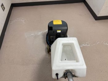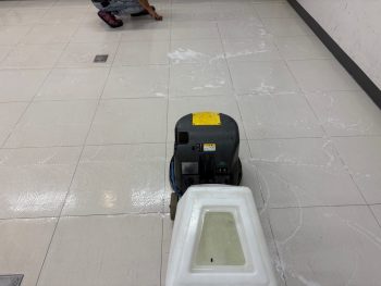 ポリッシャーという機械で洗浄作業して床の汚れを取っていきます。