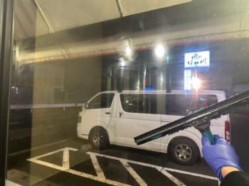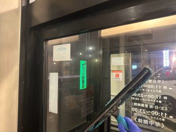 毎月定期清掃をご依頼頂いているお客様より、「店舗ガラスの汚れが気になるのでガラス清掃をしてほしい!」とお客様からご依頼、ご相談をいただきました。