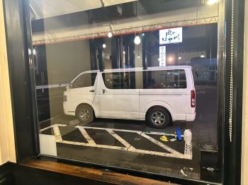 ハンバーグ屋ということもあり、どうしてもガラスに汚れがついていってしまうので2、3ヶ月に1回ガラス清掃をさせて頂いてます!