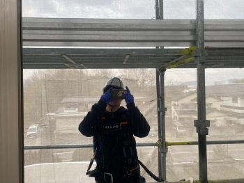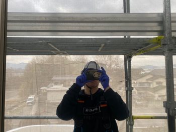 今回は足場から作業を行いましたが、ロープやゴンドラなどで作業する場合もございます。
