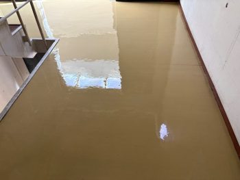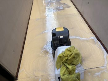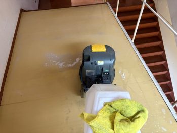 その後、汚水を回収し水拭きで床を整え、仕上げにワックスを塗布していきます。